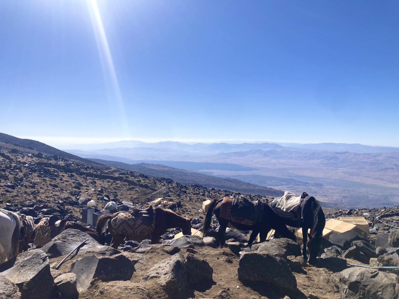 Oben im Camp ist alles sehr spartanisch und oft ein Durcheinander von Hikern, den Helfern und den Pferden für den Transport. Aber wenn die eine Gruppe dann morgens aufbricht und die andere noch nicht da ist – dann sitzen Achmed, der Koch, und ich bei einer Zigarette und genießen die absolute Ruhe. Nur der Wind und ein paar Vögel, nur der heilige Berg und der endlose Himmel.