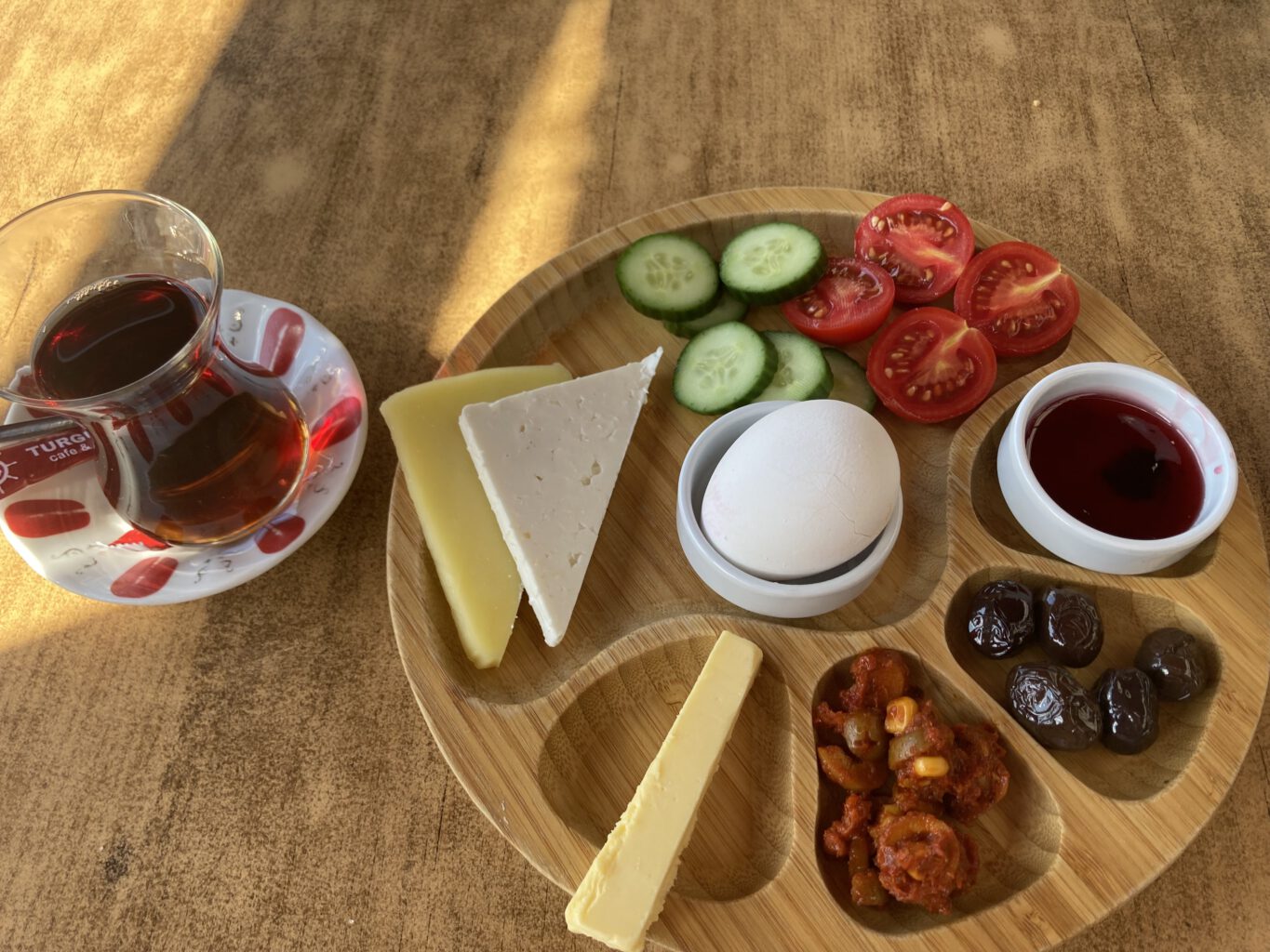 Und es war so, wie frau sich eine Sommerfrische vorstellt: nette, einfache Pensionen wie Yazar Marin Denizer, oder weiter oben Hasan Bey Konagi bzw. am schönsten die Antik Apart Pansiyon; kleine Strände mit Sonnenliegen oder Badefelsen, wo die Einheimischen schwimmen gehen. Man kann stundenlang frühstücken im Amasra Kavalti Restoran direkt beim kleinen Hafen, mit Ausflugsbötchen um die Halbinsel herum schippern oder zum winzigen Leuchtturm ganz oben spazieren. Abends dann auf Fisch und Raki im Mustafa Amca’nin Yeri oder Lotis Balik einkehren. Und in den Lädchen findet sich noch ein Salatbesteck aus Olivenholz; nun gut, das passt noch irgendwie ins Gepäck.