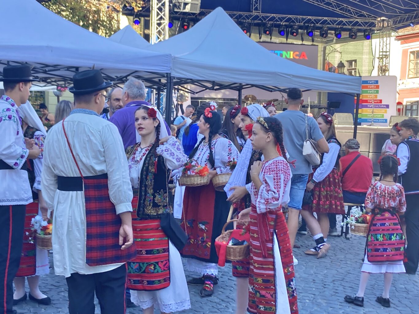 Ende August findet hier seit 2001 (!) das Proetnica, ein interkulturelles Festival für Musik und Tanz, statt, was in der ganzen Altstadt gut hörbar ist 🙂 Es lässt das Herz der Ethnologin natürlich höher schlagen 😉 bei all den Trachten, Tänzen und Gesängen von so vielen Gruppen in Rumänien: ein Mix aus Rumänen, Deutschen, Roma, Griechen, Bukowinern, Juden, Moldauern, Mazedoniern, Albanern etc. Das Ziel ist: „den sozialen Frieden in einer stabilen, demokratischen und pluralistischen Gesellschaft zu stärken, bietet jede Ausgabe eine Plattform für die in Rumänien zusammenlebenden Ethnien“.