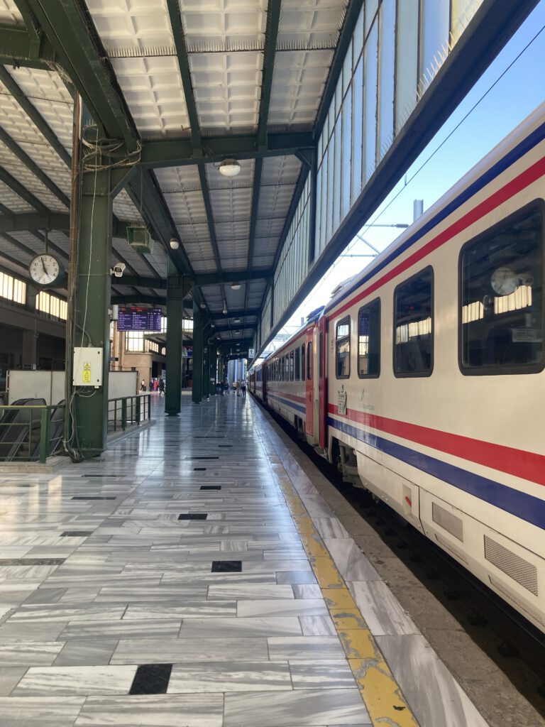 Hinter dem schicken Bahnhof in Ankara liegt der alte, an dem auch der Dogu Express einmal täglich losfährt. Die Fahrtzeit beträgt 24 bis 30 Stunden und dies beschreibt es ziemlich exakt; wir haben 29 Stunden benötigt und der Speisewagen gab nicht so viel her. Clever, wer sich Bier oder Wein einpackt. Aber die Aussicht entschädigt alles: Es ist eine beeindruckende und abwechslungsreiche Fahrt, ich habe eigentlich ständig am Fenster gehangen.