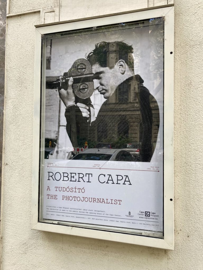 Er ist hier als Endre Friedmann geboren, dann in den 30ern über Wien und Berlin nach Paris geflohen. Weltberühmt ist der Fotograf, der sich dann Robert Capa nannte, mit seinen Fotos aus dem Spanischen Bürgerkrieg und der Invasion der Alliierten im Juni 1944 in der Normandie geworden. Weniger bekannt sind seine Fotos von den Tagen nach den Invasion auf Sizilien im September 1943 oder im Sommer 1945 in Berlin. Das sein Leben noch nicht verfilmt wurde, ist mir seit langem ein Rätsel….